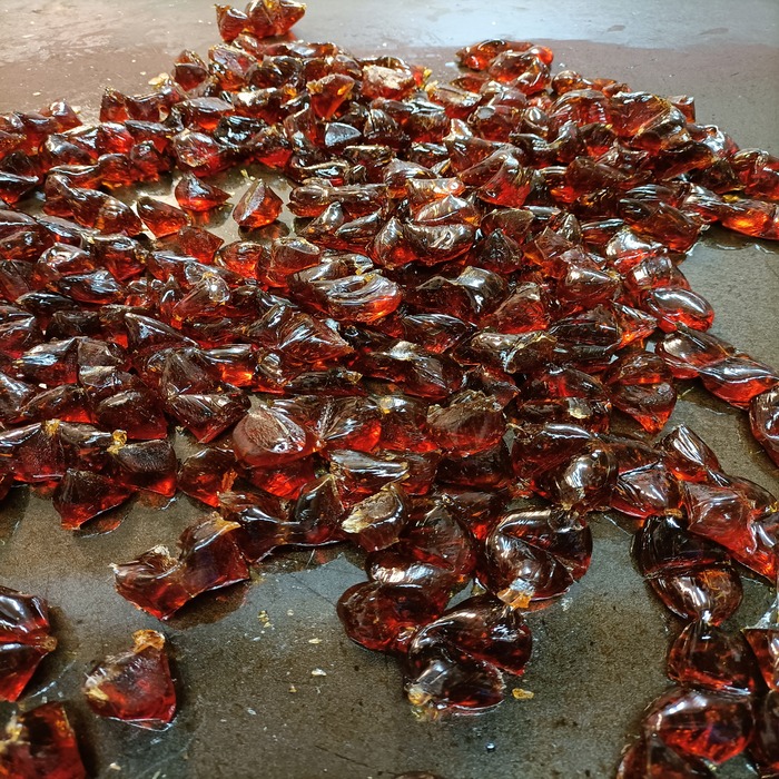 Homemade in the shop using our traditional copper pots. This triangular hard boiled sweet is so traditional people used to make them and sell them from their kitchen windows.